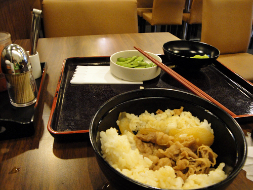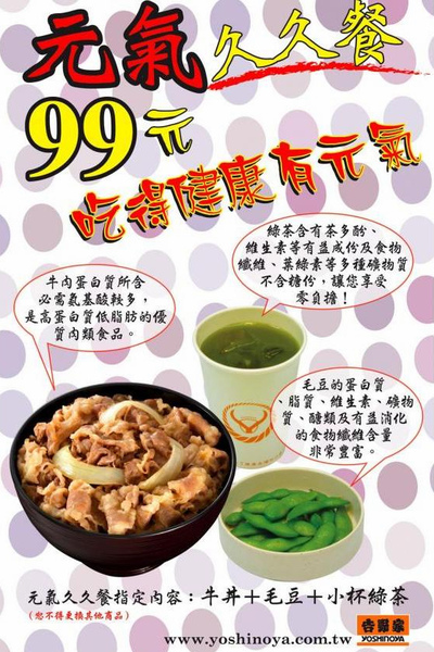有夠貴的.....忽然發現有一個叫做元氣久久的套餐,牛丼+綠茶+毛豆只要$99