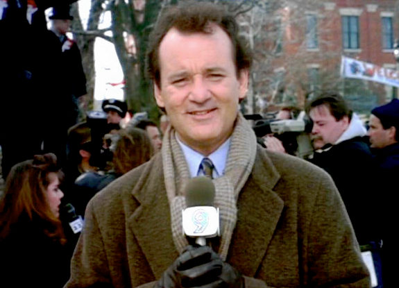 男主角可是一直重複過著「同一天」 - Groundhog Day土撥鼠節.